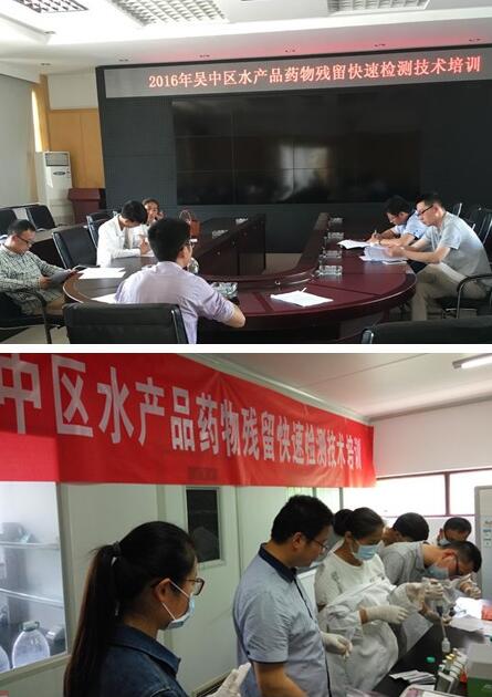 此次培訓(xùn)一是介紹了2015年吳中區(qū)水產(chǎn)品藥物殘留快速檢測(cè)工作在全省的績效考評(píng)結(jié)果及存在的問題;二是布置2016年的快速檢測(cè)任務(wù)及工作要求;三是發(fā)放實(shí)驗(yàn)耗材。