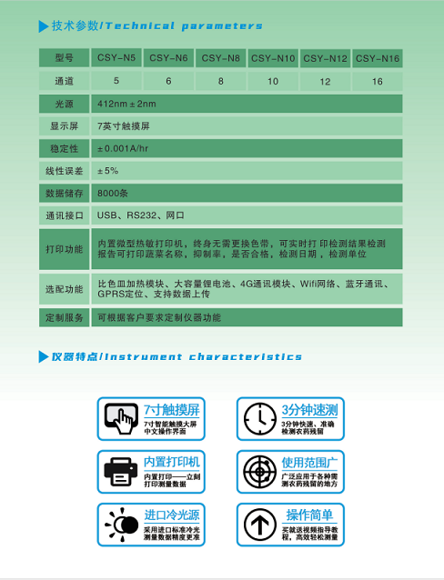 深芬儀器生產(chǎn)的新一代智能型農(nóng)藥殘留快速檢測(cè)儀是根據(jù)農(nóng)業(yè)標(biāo)準(zhǔn)方法(NY/T 448-2001)和國(guó)標(biāo)(GB/T5009.199-2003)中的酶抑制率法,嚴(yán)格遵循《GB/T5009.199-2003蔬菜中有機(jī)磷和氨基甲酸酯類(lèi)農(nóng)藥殘留快速檢測(cè)方法標(biāo)準(zhǔn)》中的規(guī)定對(duì)蔬菜、啤酒等各種食品及原料中有機(jī)磷和氨基甲酸酯類(lèi)農(nóng)藥殘留的快速檢測(cè)。