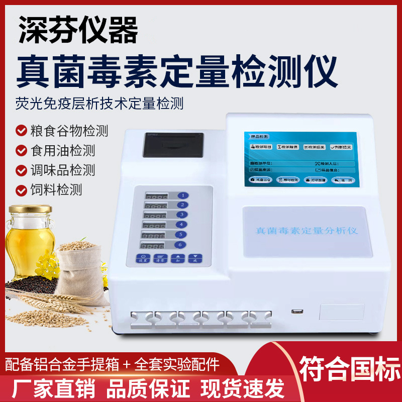 深芬儀器CSY-YG701真菌毒素快速檢測儀能夠快速定量檢測糧食、飼料、谷物、食用油、調(diào)味品等食品中T2毒素、嘔吐毒素、赭曲霉毒素、伏馬毒素、玉米赤霉烯酮,適用于糧油監(jiān)測中心、糧油飼料生產(chǎn)加工、食品加工貿(mào)易、畜禽養(yǎng)殖戶自查、質監(jiān)部門用于市場快速篩查等,能夠快速準確定量檢測出食品中的真菌毒素含量,杜絕真菌毒素超標食物流入市場。
