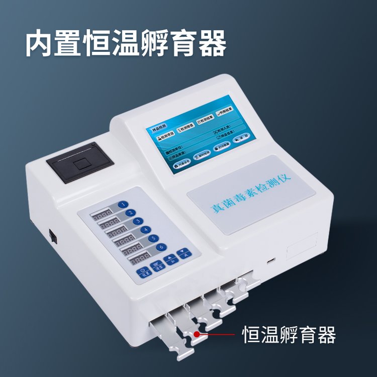 深芬儀器研制出的CSY系列真菌毒素快速測定儀應(yīng)用競爭抑制免疫層析的原理,通過檢測線熒光定量卡中的熒光強(qiáng)弱程度,定量分析待檢樣品中真菌毒素殘留含量。能夠快速定量檢測糧食、飼料、谷物、食用油、調(diào)味品等食品中黃曲霉毒素(T2毒素、嘔吐毒素、赭曲霉毒素、伏馬毒素、玉米赤霉烯酮,)含量。儀器不僅制作精良,而且操作簡單、采用熒光讀數(shù),結(jié)果精準(zhǔn)準(zhǔn)確。采用熒光量子點技術(shù),結(jié)合了膠體金快速、酶聯(lián)免疫定量以及色譜法準(zhǔn)確的技術(shù)特點,可在8min內(nèi)快速準(zhǔn)確定量的測定出對應(yīng)的項目。操作簡便,只需一步加樣,無需標(biāo)準(zhǔn)品,無需做標(biāo)準(zhǔn)曲線,結(jié)果準(zhǔn)確可靠且可現(xiàn)場打印,準(zhǔn)確性高度符合HPLC法的檢測結(jié)果,為霉菌毒素的快速現(xiàn)場檢測提供了一種全新的技術(shù)手段,適用于各類原料收儲、飼料加工企業(yè)、養(yǎng)殖企業(yè)及相關(guān)監(jiān)管部門。